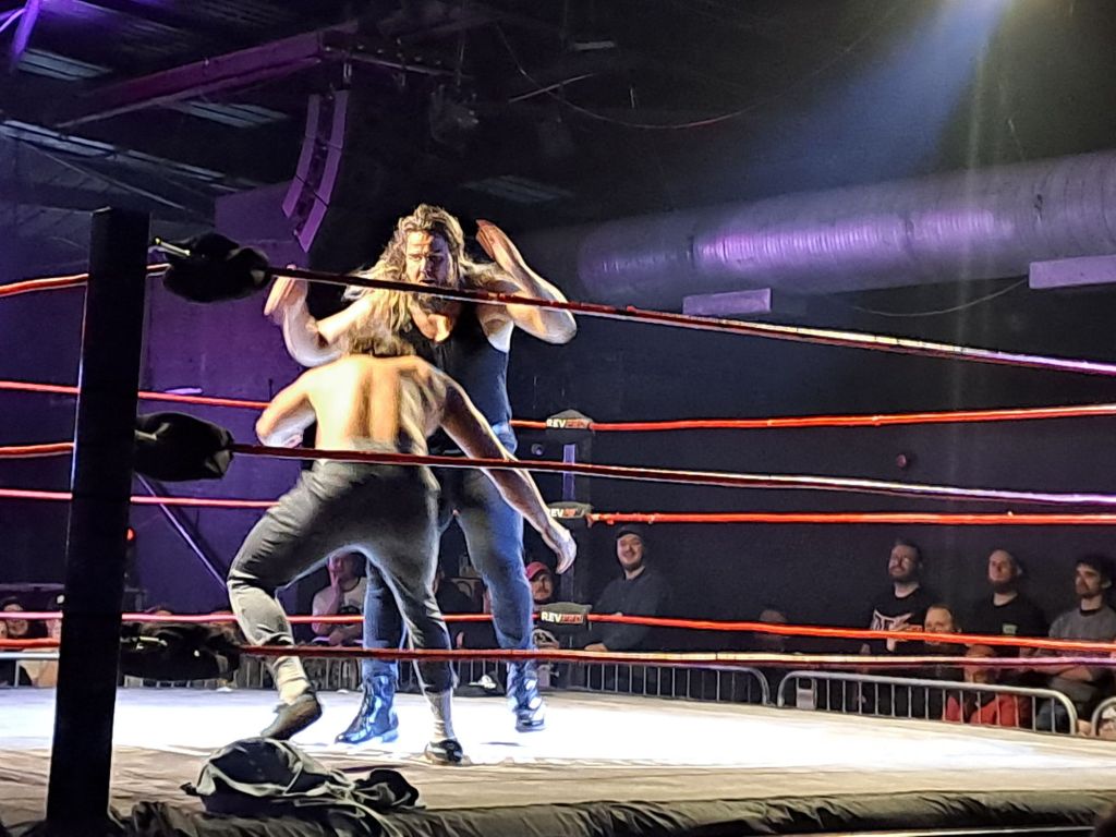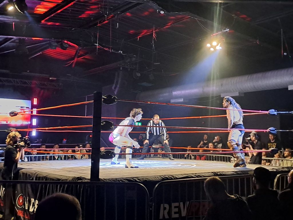 The match was a banger in more ways than one, as it apparently led to one of the boards underneath the canvas snapping, which led to an extended interval at halftime as the ring crew and RevPro staff re-constructed the ring.
