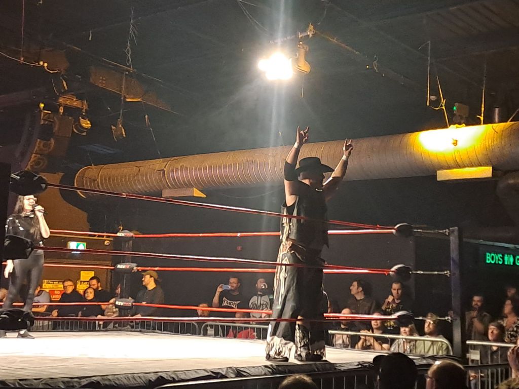 It was during the Robbie Derby that I noticed a big Kevin Nash looking motherfucker making his way around the venue. This rather imposing gentleman decided to plant himself directly behind me. At this point, I had no idea who this person was but it was quite unnerving. It was a relief when he charged the ring and demanded the microphone.