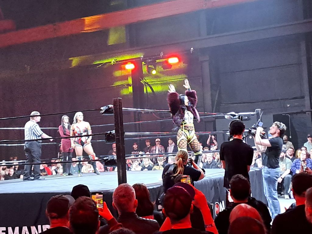 Moné might have made her name over the past decade as the biggest bitch in wrestling but something about RevPro has slightly softened her. Whether it’s her relationship with Kanji, the adulation of the fans or THE FOOD (WE HAVE GOOD FOOD IN THE UK ALRIGHT), there was a chink in her armour and it was Alexxis Falcon who exploited it.